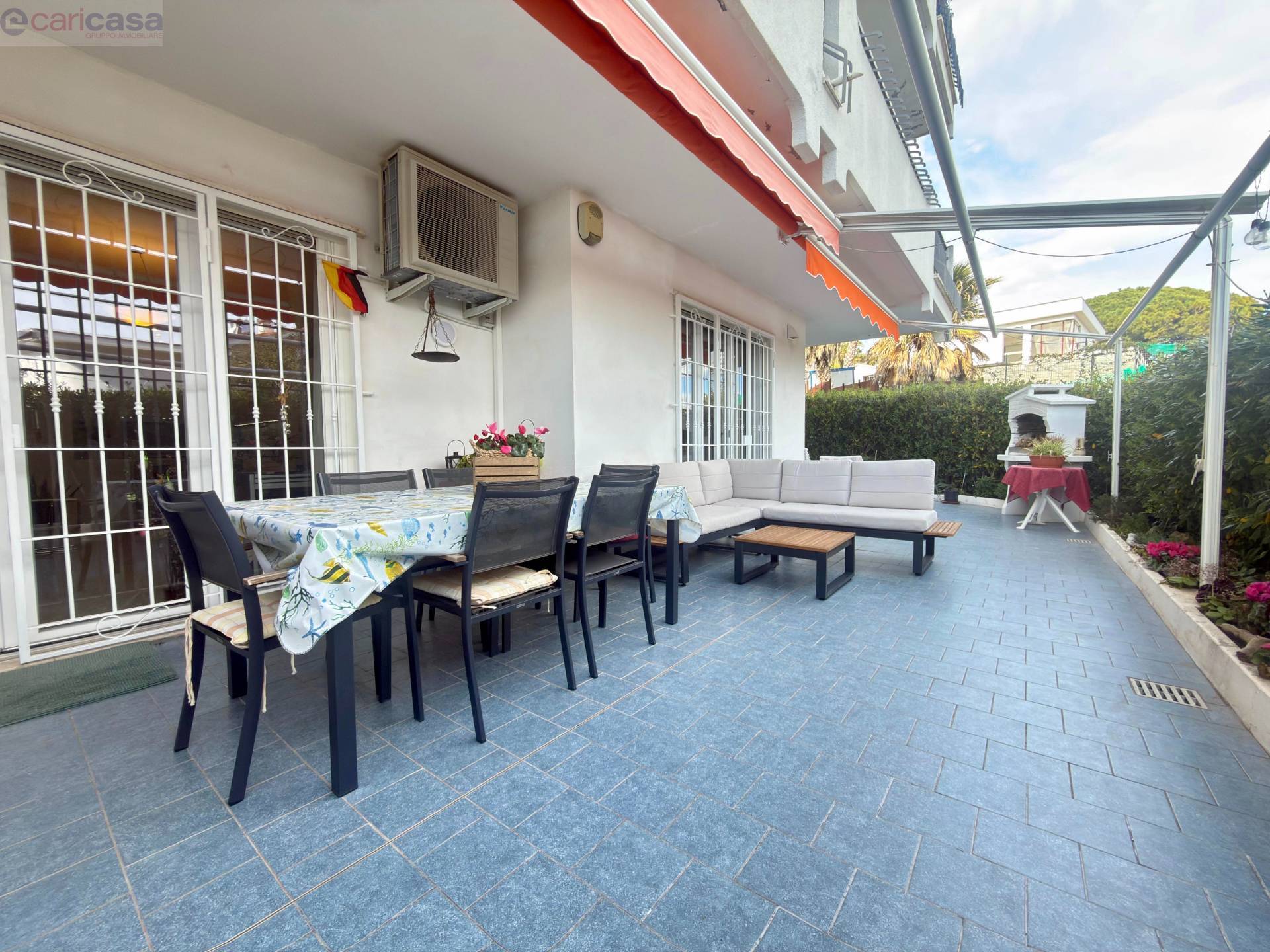 Internamente è composto da soggiorno con angolo cottura, camera da letto matrimoniale, cameretta e bagno.Punto di forza della proprietà è lo splendido spazio esterno di circa 60 mq, esposto a sud e quindi particolarmente luminoso, suddiviso tra una zona piastrellata perfetta per pranzi all’aperto e un grazioso giardino.L’appartamento è dotato di: tapparelle elettriche infissi con doppi vetri a taglio termico pareti coibentate in tutta la casa impianto di aria condizionata caldo/freddo riscaldamento autonomo con caldaia nuova Completano la proprietà un posto auto privato e una cantina.Importante valore aggiunto: a breve verrà rifatta la facciata del palazzo, con spese già interamente sostenute dall’attuale proprietario.La cucina è inclusa nel prezzo.Una soluzione pronta da vivere, con ottima esposizione e spazi esterni vivibili, in una zona tranquilla ma comoda ai servizi.