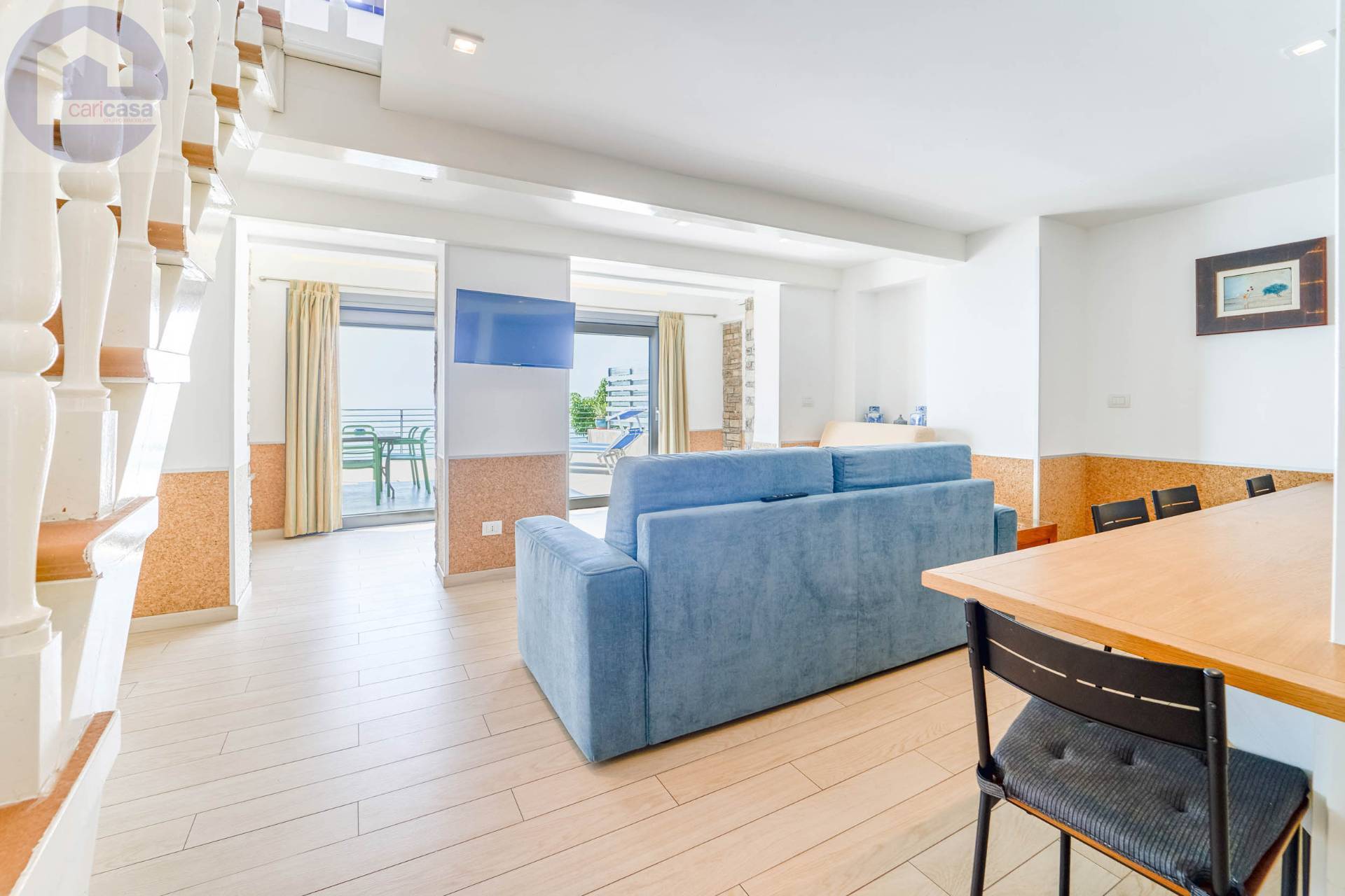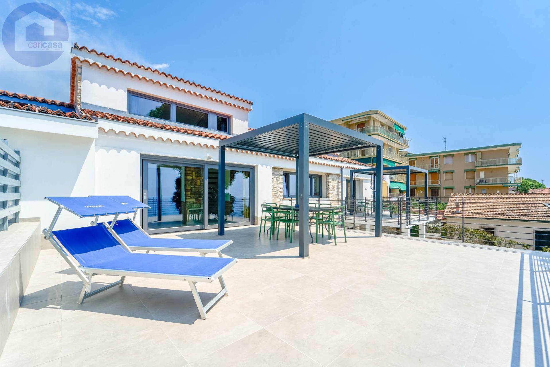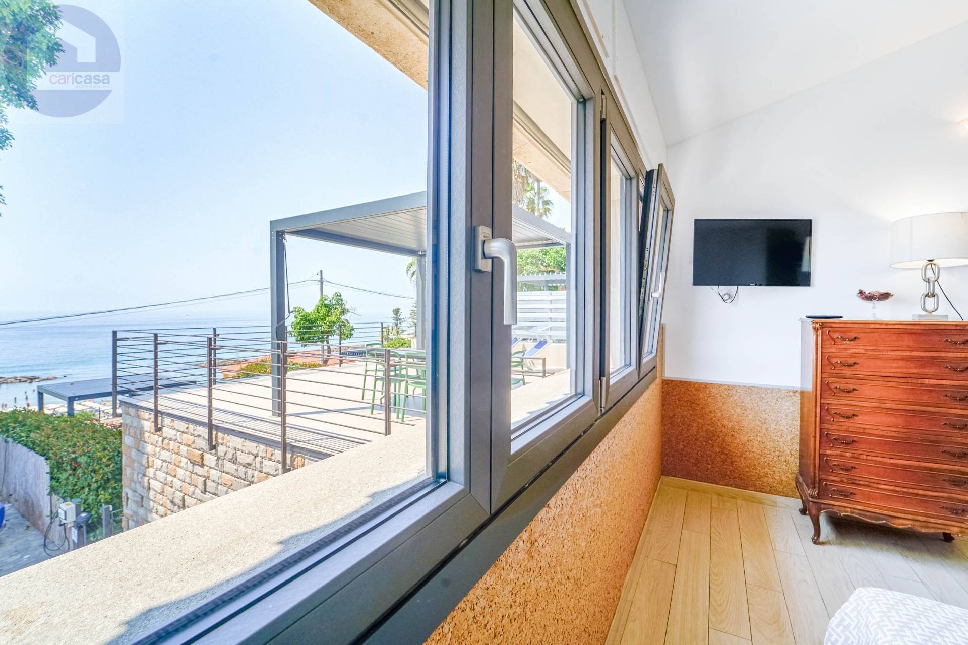 Con vista mare aperta, a pochi passi dalle spiagge e dal centro di Santo Stefano al Mare, proponiamo appartamento di grande metratura e unico nel suo genere.Elemento principale di questo appartamento è la grande terrazza con una vista meravigliosa sul mare.L’immobile è inserito all’interno di un piccolo complesso con area benessere condominiale e posto auto scoperto di proprietà.Gli spazi sono ampi e luminosi, studiati nei minimi dettagli:dall’ampia zona giorno con cucina a vista, si accede alla grande terrazza; allo stesso piano si trovano due camere matrimoniali e due bagni, mentre al piano superiore si trova un’ulteriore stanza.Da tutte le stanze, ad eccezione dei bagni, si ha vista mare.Al piano terra è presente un piccolo deposito per le biciclette, venduto oltre al posto auto, insieme alla proprietà.Tutti o servizi, le spiagge e il centro sono raggiungibili a piedi.Disponibilità di immobili differenti a prezzi diversi e metrature diverse.