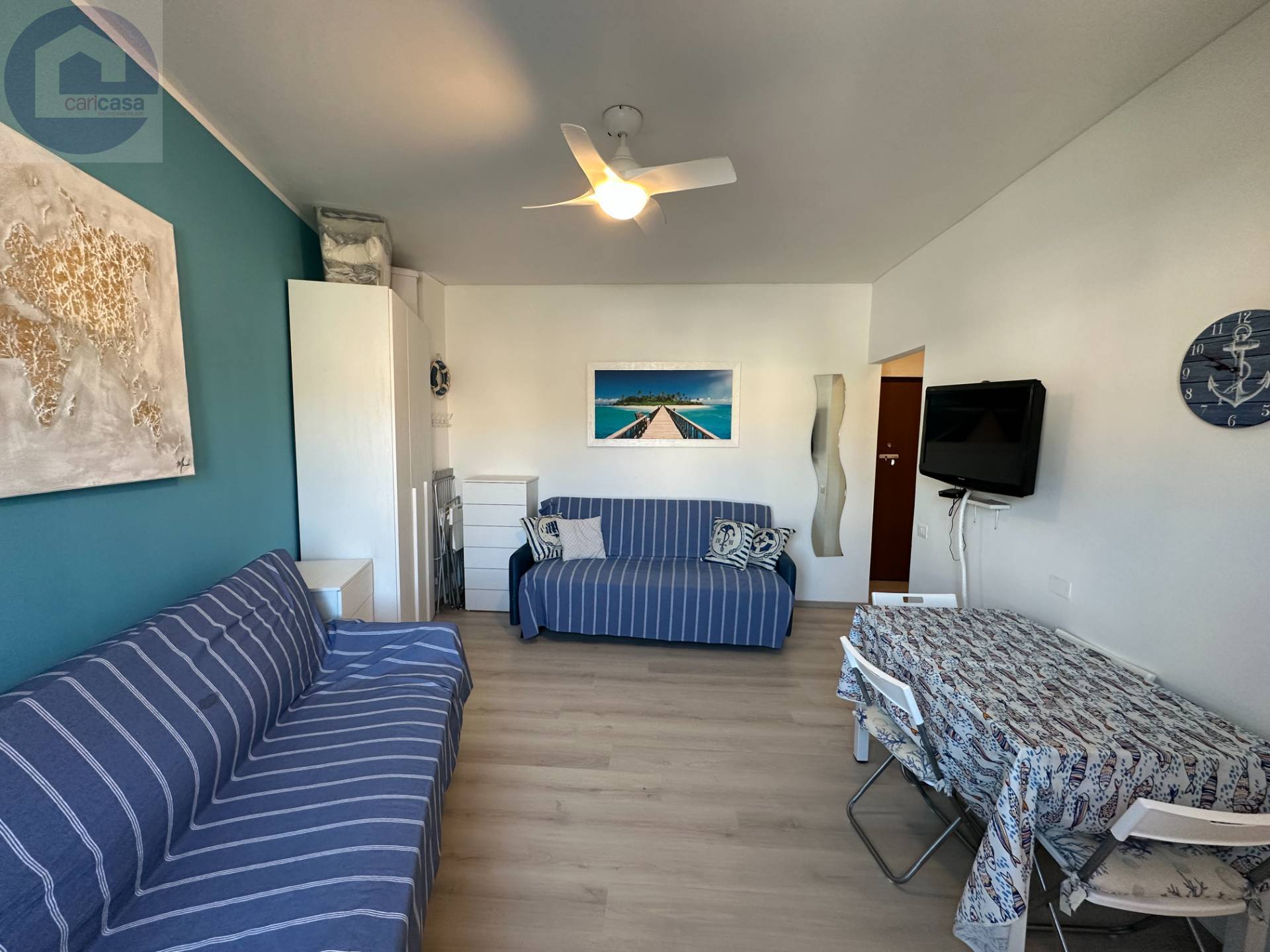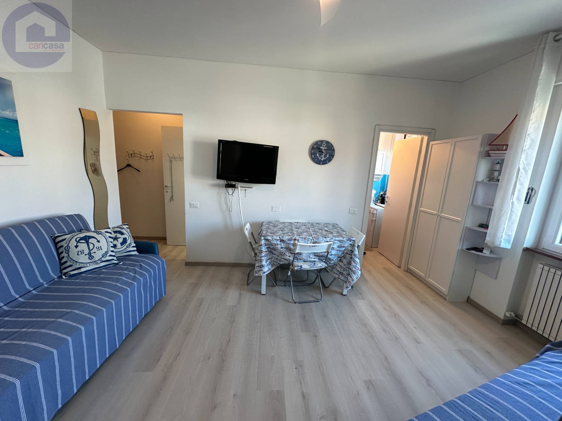 Nelle adiacenze delle spiagge e del percorso ciclabile e pedonale, proponiamo piccolo appartamento ristrutturato.L’alloggio è posto al secondo piano di una palazzina ubicata sul mare e servita da ascensore; internamente è composto da una zona giorno/zona notte che ospita due divani/letto, un piccolo cucinino separato e un bagno.Ideale per chi è alla ricerca di un punto di appoggio per trascorrere le vacanze al mare, in posizione estremamente comoda per muoversi a piedi o per chi desideri fare un investimento.Tutti i servizi di prima necessità, i negozi, oltre alle spiagge attrezzate o libere, sono a pochi metri dal condominio.Il riscaldamento è centralizzato.Il condominio, curato e con servizio di portineria, oltre che di vigilanza notturna, dispone di due piscine condominiali e zona solarium, fronte mare a disposizione dei condomini.Un’ampia area verde sottostante il condominio, arrichisce questo contesto condominiale in posizione strategica.